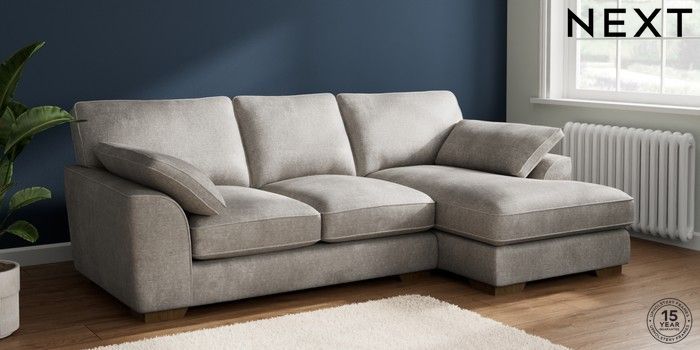 7.2.10 Buy Stamford Grand Relaxed Sit Medium Sofa Chaise - Right Hand Plush Chenille Light Grey Large Square Angle - Mid from the Seasons online shop Click here to use our website with more accessibility support, for example screen readers