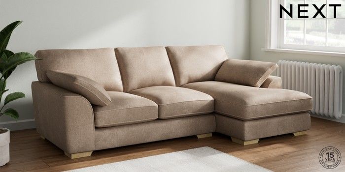 7.2.10 Buy Stamford Grand Relaxed Sit Medium Sofa Chaise - Right Hand Plush Chenille Mid Natural Large Square Angle - Light from the Seasons online shop Click here to use our website with more accessibility support, for example screen readers