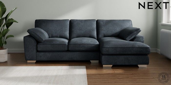 7.3.1 Buy Stamford Grand Relaxed Sit Medium Sofa Chaise - Right Hand Plush Chenille Slate Blue Large Square Angle - Chrome Metal from the Seasons online shop Click here to use our website with more accessibility support, for example screen readers
