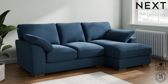 7.3.1 Buy Stamford Grand Relaxed Sit Medium Sofa Chaise - Right Hand Plush Velvet Easy Clean Airforce Blue Large Square Angle - Mid from the Seasons online shop Click here to use our website with more accessibility support, for example screen readers