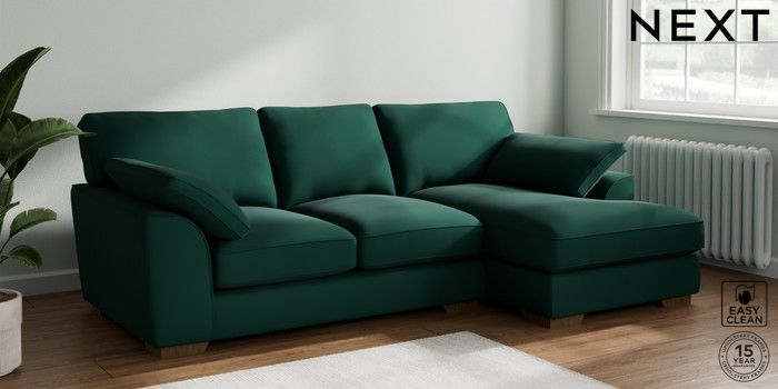7.3.1 Buy Stamford Grand Relaxed Sit Medium Sofa Chaise - Right Hand Plush Velvet Easy Clean Bottle Green Large Square Angle - Mid from the Seasons online shop Click here to use our website with more accessibility support, for example screen readers