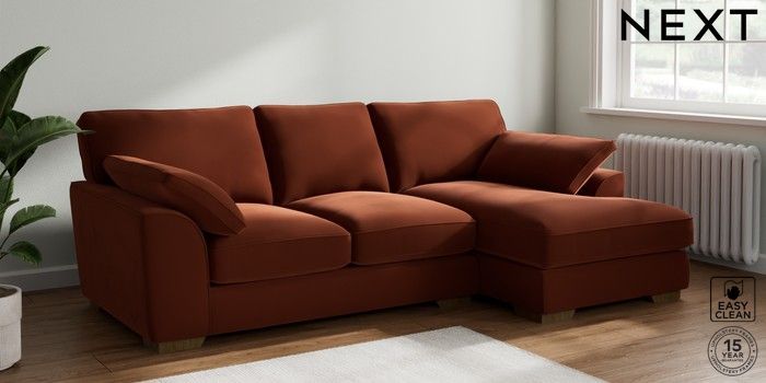 7.3.1 Buy Stamford Grand Relaxed Sit Medium Sofa Chaise - Right Hand Plush Velvet Easy Clean Ginger Orange Large Square Angle - Mid from the Seasons online shop Click here to use our website with more accessibility support, for example screen readers