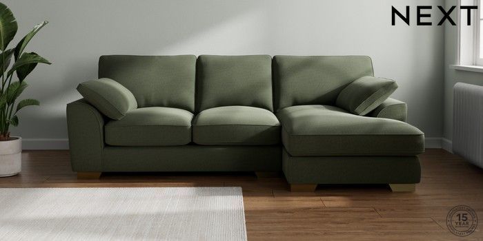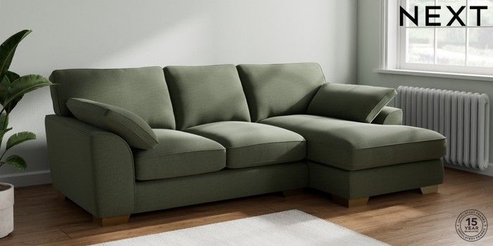 7.3.1 Buy Stamford Grand Relaxed Sit Medium Sofa Chaise - Right Hand Relaxed Linen Look Dark Green Large Square Angle - Brushed Brass from the Seasons online shop Click here to use our website with more accessibility support, for example screen readers