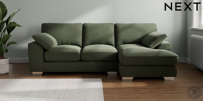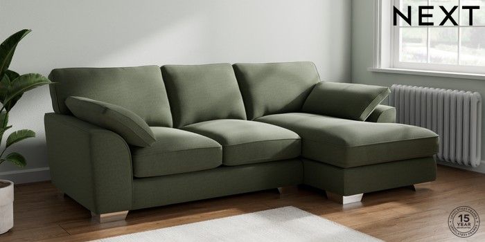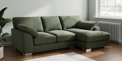 7.3.1 Buy Stamford Grand Relaxed Sit Medium Sofa Chaise - Right Hand Relaxed Linen Look Dark Green Large Square Angle - Chrome Metal from the Seasons online shop Click here to use our website with more accessibility support, for example screen readers