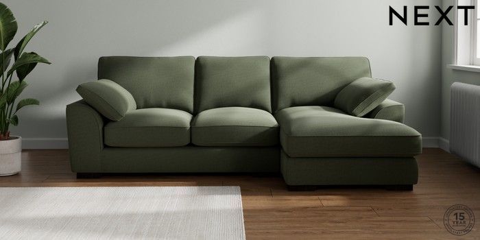 7.3.1 Buy Stamford Grand Relaxed Sit Medium Sofa Chaise - Right Hand Relaxed Linen Look Dark Green Large Square Angle - Dark from the Seasons online shop Click here to use our website with more accessibility support, for example screen readers