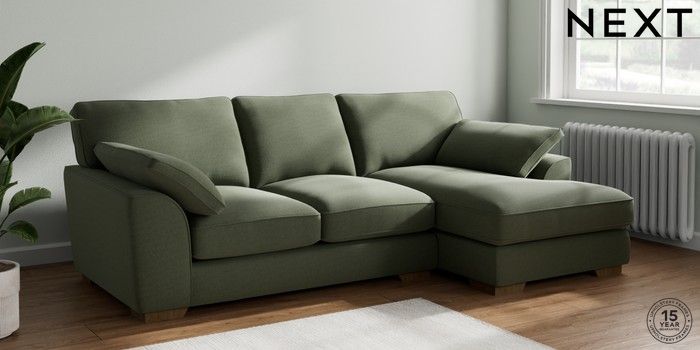7.3.1 Buy Stamford Grand Relaxed Sit Medium Sofa Chaise - Right Hand Relaxed Linen Look Dark Green Large Square Angle - Mid from the Seasons online shop Click here to use our website with more accessibility support, for example screen readers