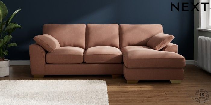 7.3.1 Buy Stamford Grand Relaxed Sit Medium Sofa Chaise - Right Hand Relaxed Linen Look Light Rust Brown Large Square Angle - Brushed Brass from the Seasons online shop Click here to use our website with more accessibility support, for example screen readers