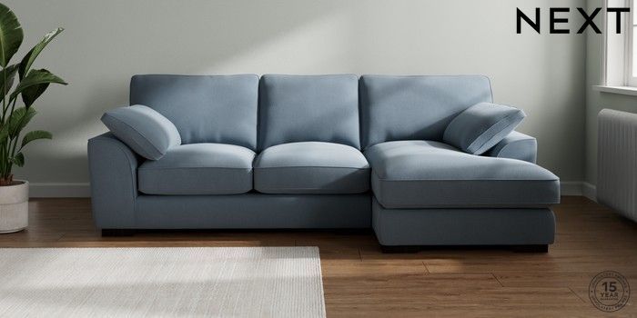 7.3.1 Buy Stamford Grand Relaxed Sit Medium Sofa Chaise - Right Hand Relaxed Linen Look Mid Blue Large Square Angle - Dark from the Seasons online shop Click here to use our website with more accessibility support, for example screen readers