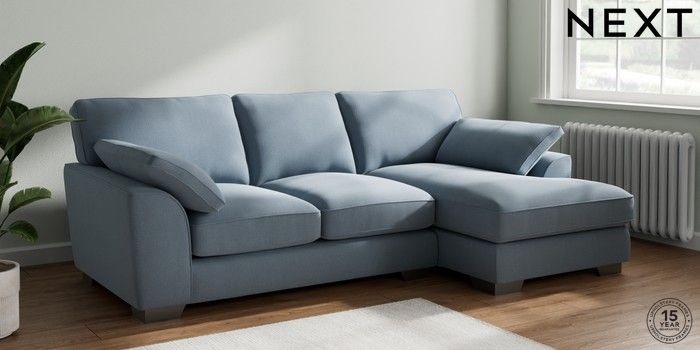 7.3.1 Buy Stamford Grand Relaxed Sit Medium Sofa Chaise - Right Hand Relaxed Linen Look Mid Blue Large Square Angle - Gunmetal from the Seasons online shop Click here to use our website with more accessibility support, for example screen readers