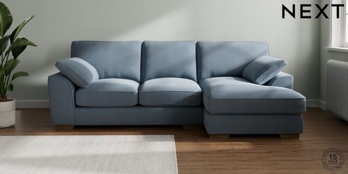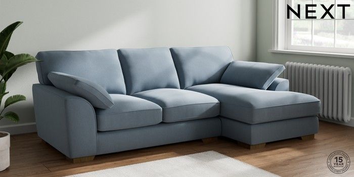 7.3.1 Buy Stamford Grand Relaxed Sit Medium Sofa Chaise - Right Hand Relaxed Linen Look Mid Blue Large Square Angle - Mid from the Seasons online shop Click here to use our website with more accessibility support, for example screen readers