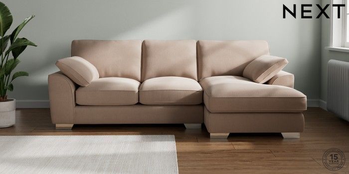7.3.1 Buy Stamford Grand Relaxed Sit Medium Sofa Chaise - Right Hand Relaxed Linen Look Mid Natural Large Square Angle - Chrome Metal from the Seasons online shop Click here to use our website with more accessibility support, for example screen readers