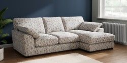 7.3.1 Buy Stamford Grand Relaxed Sit Medium Sofa Chaise - Right Hand Relaxed Linen Look Print Woodblock Floral Blue Large Square Angle - Dark from the Seasons online shop