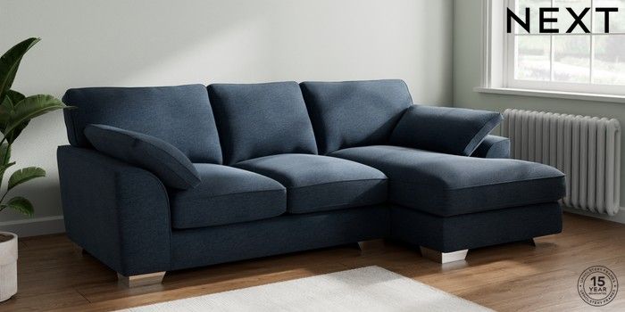 7.3.1 Buy Stamford Grand Relaxed Sit Medium Sofa Chaise - Right Hand Ripple Chenille Dark Blue Large Square Angle - Chrome Metal from the Seasons online shop Click here to use our website with more accessibility support, for example screen readers