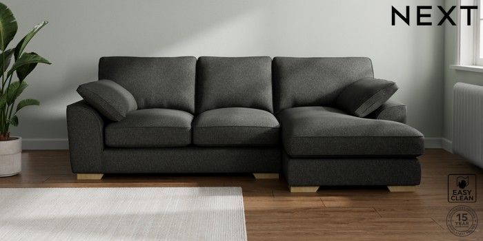 7.3.1 Buy Stamford Grand Relaxed Sit Medium Sofa Chaise - Right Hand Tweedy Blend Easy Clean Charcoal Grey Large Square Angle - Light from the Seasons online shop Click here to use our website with more accessibility support, for example screen readers