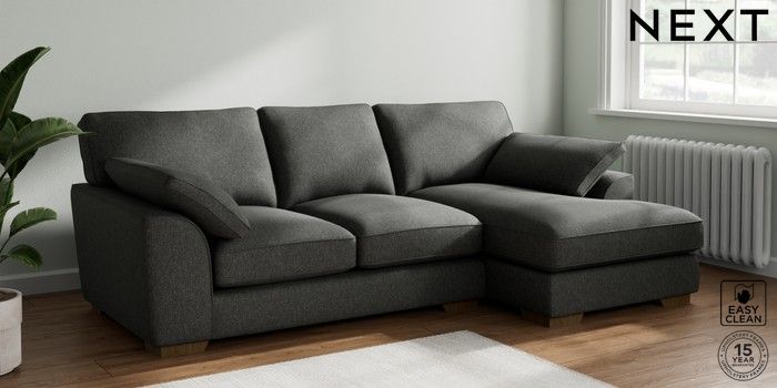 7.3.1 Buy Stamford Grand Relaxed Sit Medium Sofa Chaise - Right Hand Tweedy Blend Easy Clean Charcoal Grey Large Square Angle - Mid from the Seasons online shop Click here to use our website with more accessibility support, for example screen readers