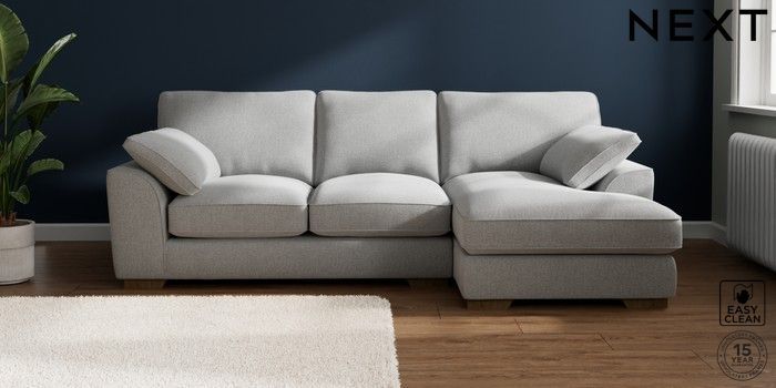 7.3.1 Buy Stamford Grand Relaxed Sit Medium Sofa Chaise - Right Hand Tweedy Blend Easy Clean Light Silver Grey Large Square Angle - Mid from the Seasons online shop Click here to use our website with more accessibility support, for example screen readers