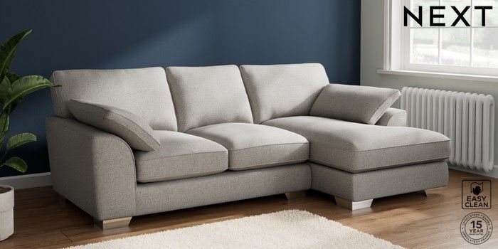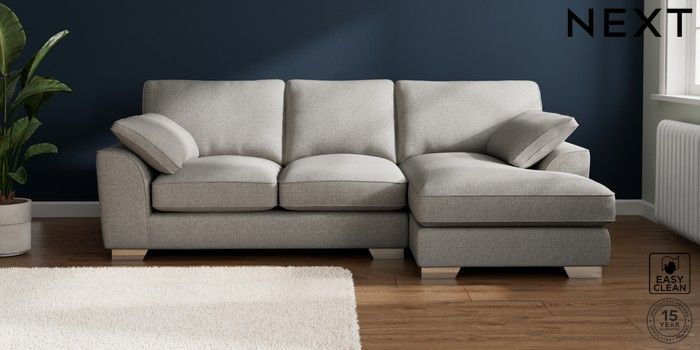 7.3.1 Buy Stamford Grand Relaxed Sit Medium Sofa Chaise - Right Hand Woven Chenille Easy Clean Light Grey Large Square Angle - Chrome Metal from the Seasons online shop Click here to use our website with more accessibility support, for example screen readers