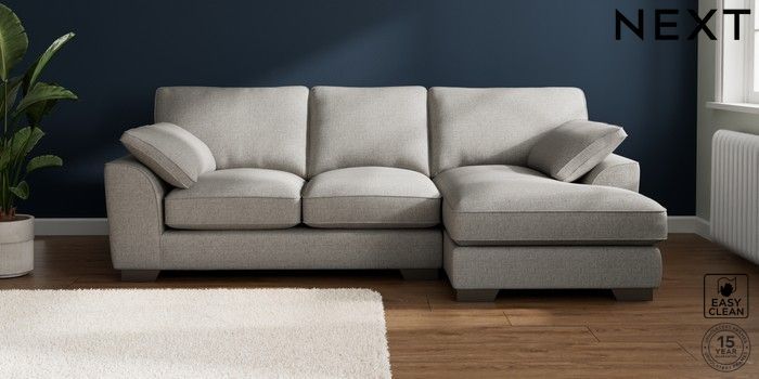 7.3.1 Buy Stamford Grand Relaxed Sit Medium Sofa Chaise - Right Hand Woven Chenille Easy Clean Light Grey Large Square Angle - Gunmetal from the Seasons online shop Click here to use our website with more accessibility support, for example screen readers