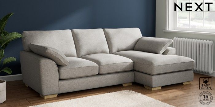 7.2.10 Buy Stamford Grand Relaxed Sit Medium Sofa Chaise - Right Hand Woven Chenille Easy Clean Light Grey Large Square Angle - Light from the Seasons online shop Click here to use our website with more accessibility support, for example screen readers