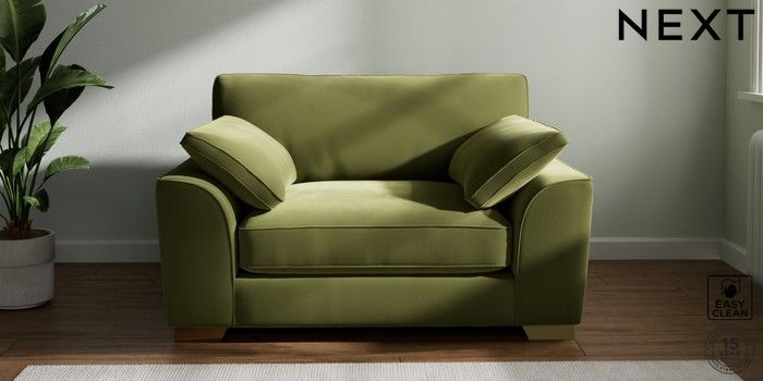 7.3.1 Buy Stamford Grand Relaxed Sit Snuggle Plush Velvet Easy Clean Mid Olive Green Large Square Angle - Brushed Brass from the Seasons online shop Click here to use our website with more accessibility support, for example screen readers