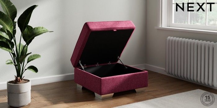 7.3.1 Buy Stamford Grand Relaxed Sit Storage Footstool Cotswold Chenille Dark Raspberry Pink Square Angle - Chrome Metal from the Seasons online shop Click here to use our website with more accessibility support, for example screen readers