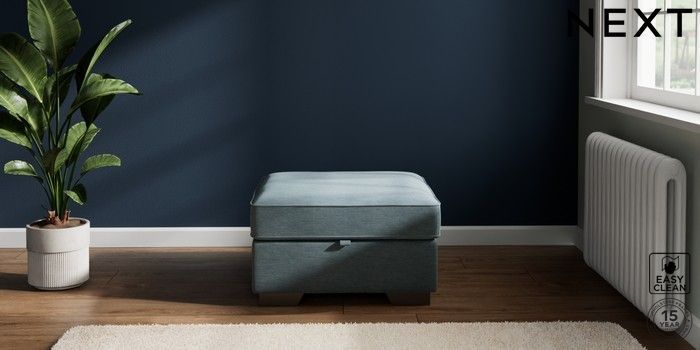 7.3.1 Buy Stamford Grand Relaxed Sit Storage Footstool Fine Chenille Easy Clean Mid Blue Square Angle - Gunmetal from the Seasons online shop Click here to use our website with more accessibility support, for example screen readers