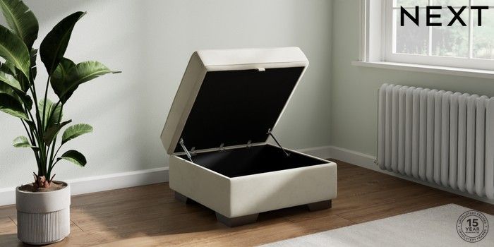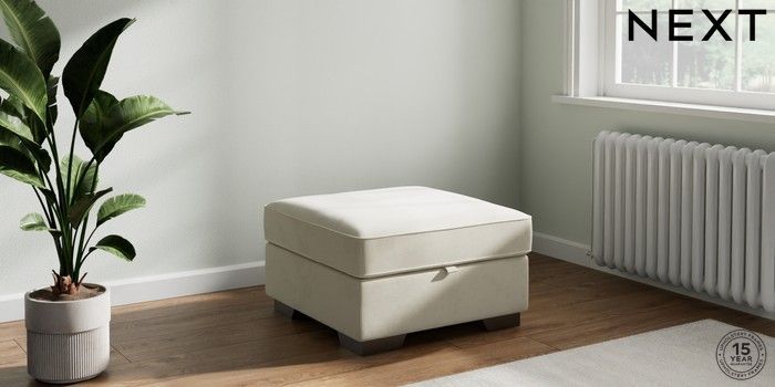 7.3.1 Buy Stamford Grand Relaxed Sit Storage Footstool Luxe Chenille Oyster Square Angle - Gunmetal from the Seasons online shop Click here to use our website with more accessibility support, for example screen readers
