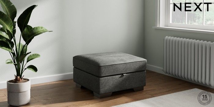 7.3.1 Buy Stamford Grand Relaxed Sit Storage Footstool Plush Chenille Dark Grey Square Angle - Gunmetal from the Seasons online shop Click here to use our website with more accessibility support, for example screen readers
