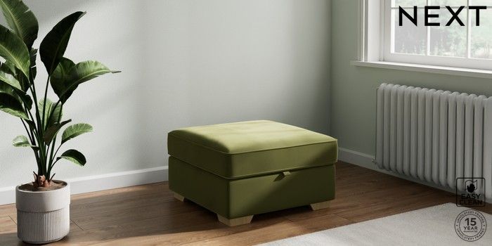 7.3.1 Buy Stamford Grand Relaxed Sit Storage Footstool Plush Velvet Easy Clean Mid Olive Green Square Angle - Light from the Seasons online shop Click here to use our website with more accessibility support, for example screen readers