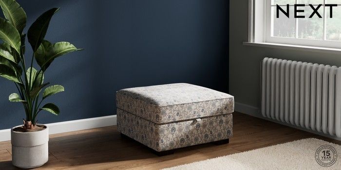 7.3.1 Buy Stamford Grand Relaxed Sit Storage Footstool Relaxed Linen Look Print Woodblock Floral Blue Square Angle - Dark from the Seasons online shop