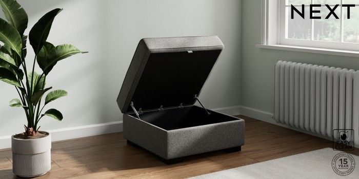 7.3.1 Buy Stamford Grand Relaxed Sit Storage Footstool Tweedy Blend Easy Clean Dark Grey Square Angle - Dark from the Seasons online shop Click here to use our website with more accessibility support, for example screen readers