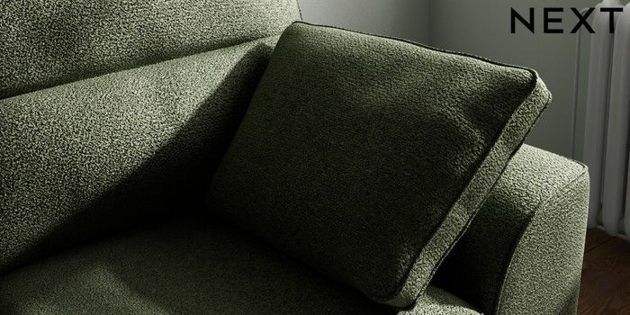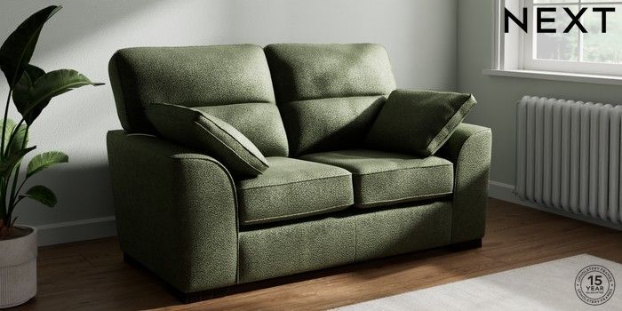 7.2.10 Buy Stamford Highback 2 Seater Small Sofa Boucle Chenille Dark Moss Green Large Square Angle - Dark from the Seasons online shop Click here to use our website with more accessibility support, for example screen readers