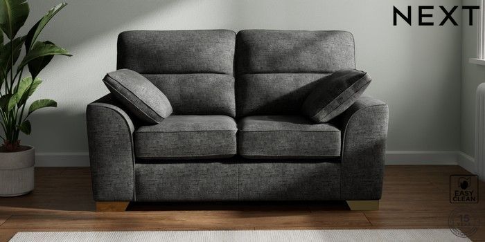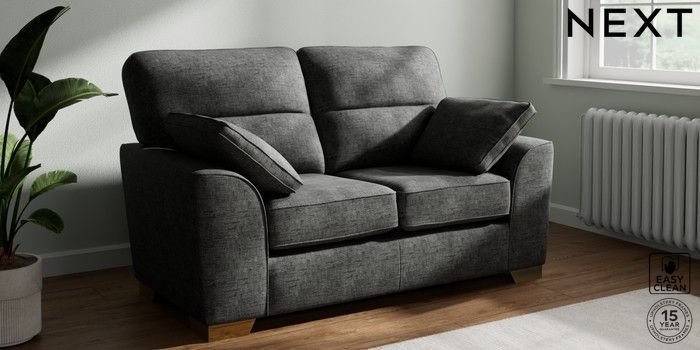 7.3.1 Buy Stamford Highback 2 Seater Small Sofa Boucle Weave Easy Clean Charcoal Grey Large Square Angle - Brushed Brass from the Seasons online shop Click here to use our website with more accessibility support, for example screen readers