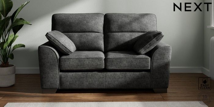 7.3.1 Buy Stamford Highback 2 Seater Small Sofa Boucle Weave Easy Clean Charcoal Grey Large Square Angle - Gunmetal from the Seasons online shop Click here to use our website with more accessibility support, for example screen readers