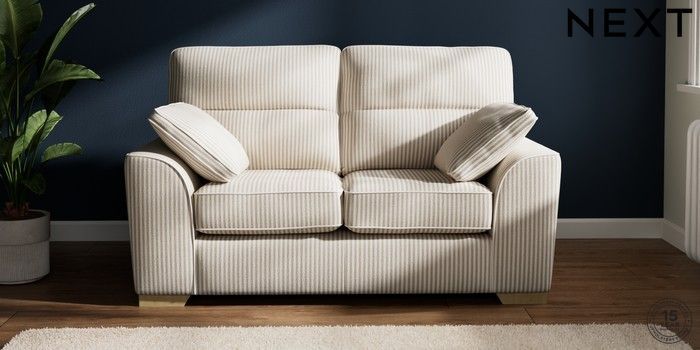 7.3.1 Buy Stamford Highback 2 Seater Small Sofa Chenille Stripe Natural Large Square Angle - Light from the Seasons online shop Click here to use our website with more accessibility support, for example screen readers