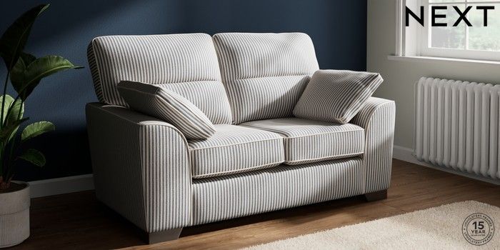 7.3.1 Buy Stamford Highback 2 Seater Small Sofa Chenille Stripe Slate Blue Large Square Angle - Gunmetal from the Seasons online shop Click here to use our website with more accessibility support, for example screen readers