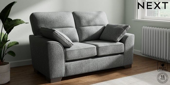 7.3.1 Buy Stamford Highback 2 Seater Small Sofa Chunky Boucle Easy Clean Mid Grey Large Square Angle - Gunmetal from the Seasons online shop Click here to use our website with more accessibility support, for example screen readers