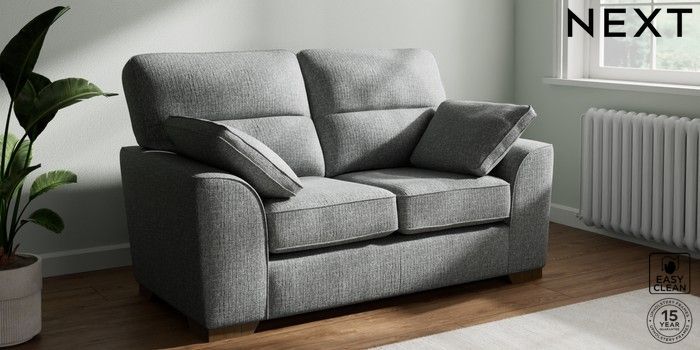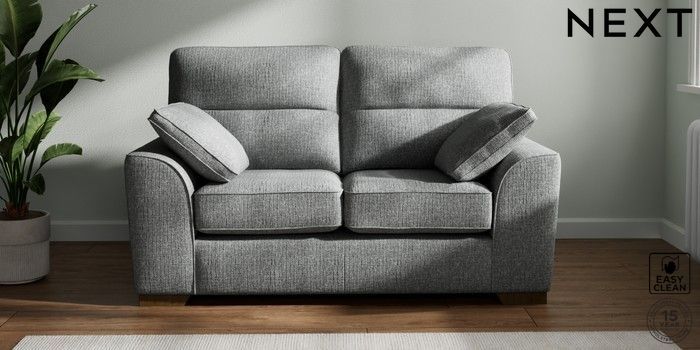 7.2.10 Buy Stamford Highback 2 Seater Small Sofa Chunky Boucle Easy Clean Mid Grey Large Square Angle - Mid from the Seasons online shop Click here to use our website with more accessibility support, for example screen readers