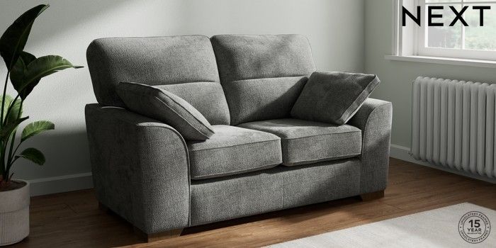 7.2.10 Buy Stamford Highback 2 Seater Small Sofa Chunky Chenille Dark Grey Large Square Angle - Mid from the Seasons online shop Click here to use our website with more accessibility support, for example screen readers