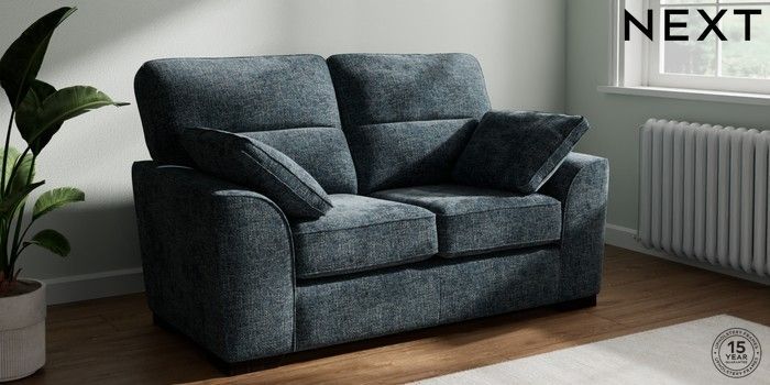 7.2.10 Buy Stamford Highback 2 Seater Small Sofa Chunky Chenille Dark Navy Blue Large Square Angle - Dark from the Seasons online shop Click here to use our website with more accessibility support, for example screen readers