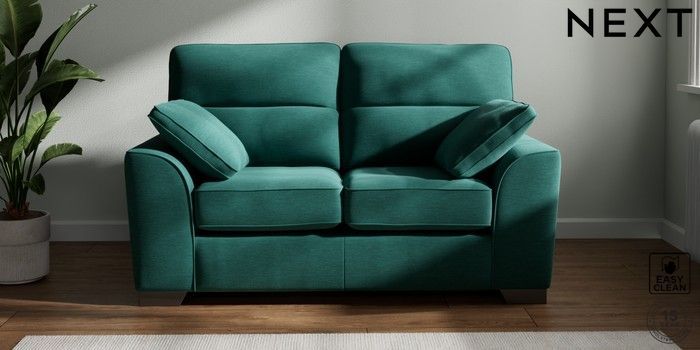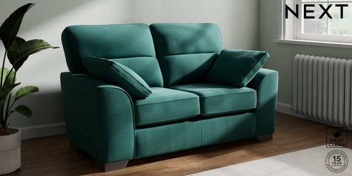 7.3.1 Buy Stamford Highback 2 Seater Small Sofa Fine Chenille Easy Clean Dark Juniper Green Large Square Angle - Gunmetal from the Seasons online shop Click here to use our website with more accessibility support, for example screen readers