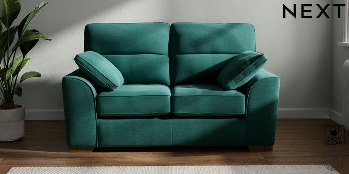 7.2.10 Buy Stamford Highback 2 Seater Small Sofa Fine Chenille Easy Clean Dark Juniper Green Large Square Angle - Mid from the Seasons online shop Click here to use our website with more accessibility support, for example screen readers
