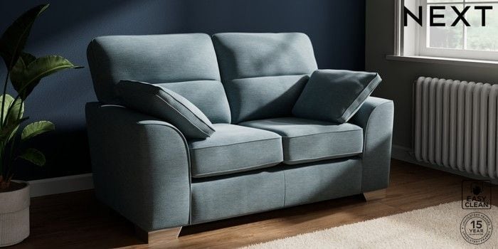 7.3.1 Buy Stamford Highback 2 Seater Small Sofa Fine Chenille Easy Clean Mid Blue Large Square Angle - Chrome Metal from the Seasons online shop Click here to use our website with more accessibility support, for example screen readers