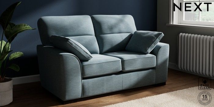 7.2.10 Buy Stamford Highback 2 Seater Small Sofa Fine Chenille Easy Clean Mid Blue Large Square Angle - Dark from the Seasons online shop Click here to use our website with more accessibility support, for example screen readers