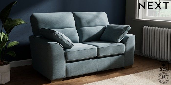 7.2.10 Buy Stamford Highback 2 Seater Small Sofa Fine Chenille Easy Clean Mid Blue Large Square Angle - Mid from the Seasons online shop Click here to use our website with more accessibility support, for example screen readers