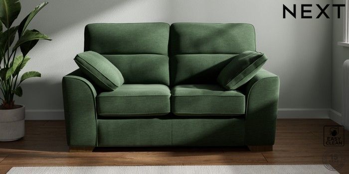 7.3.1 Buy Stamford Highback 2 Seater Small Sofa Fine Chenille Easy Clean Mid Khaki Green Large Square Angle - Mid from the Seasons online shop Click here to use our website with more accessibility support, for example screen readers