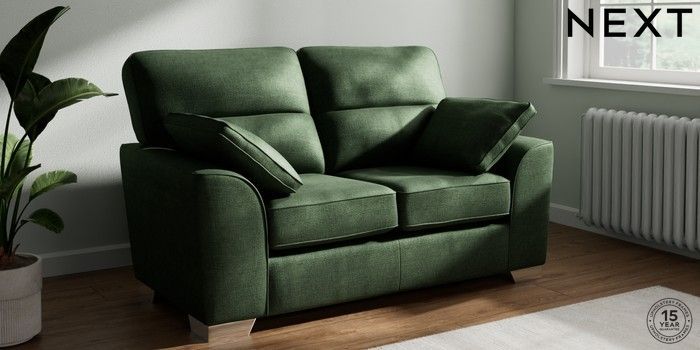 7.3.1 Buy Stamford Highback 2 Seater Small Sofa Luxe Chenille Dark Green Large Square Angle - Chrome Metal from the Seasons online shop Click here to use our website with more accessibility support, for example screen readers