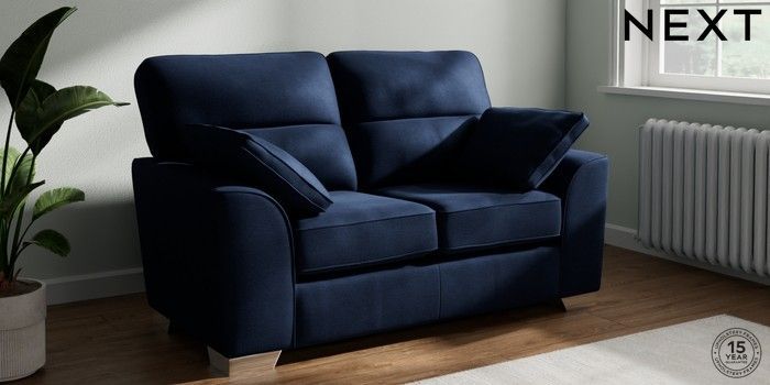 7.3.1 Buy Stamford Highback 2 Seater Small Sofa Luxe Chenille Navy Blue Large Square Angle - Chrome Metal from the Seasons online shop Click here to use our website with more accessibility support, for example screen readers