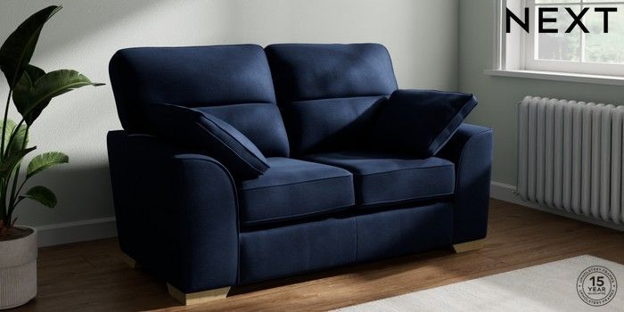 7.2.10 Buy Stamford Highback 2 Seater Small Sofa Luxe Chenille Navy Blue Large Square Angle - Light from the Seasons online shop Click here to use our website with more accessibility support, for example screen readers