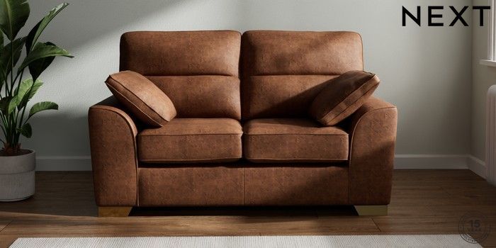 7.3.1 Buy Stamford Highback 2 Seater Small Sofa Monza Faux Leather Easy Clean Chestnut Brown Large Square Angle - Brushed Brass from the Seasons online shop Click here to use our website with more accessibility support, for example screen readers